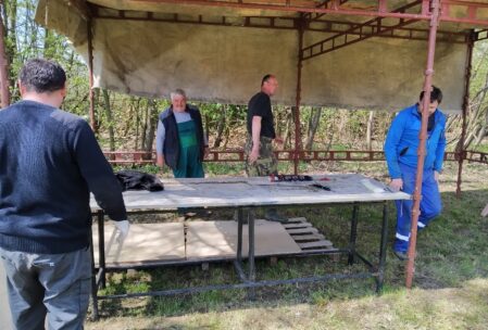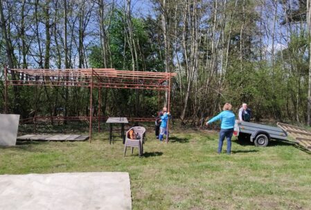 Setkání předcházely dvě sousedské brigády, při nichž jsme se sešli na pozemcích propůjčených Městem Česká Kamenice, pozemky jsme uklidili, spálili staré větvě atd. V neděli 30. dubna se pak opět za pomoci sousedů jako na předešlých brigádách podařilo plochu nachystat tak, abychom mohli odpoledne zahájit setkání. Nedělní dopoledne jsme tak společně věnovali chystání posezení, sečení trávy, zarovnávání největších nerovností kolem ohniště posečenou trávou, stavbě přístřešku k točení piva a k přípravě dalšího občerstvení, přípravě her pro děti, na nichž se velkou pomocí podílela Lenka Horynová, a stavbě vísecké májky, kterou nachystali Mirek a Zdena Hagarovi za přispění Šárky Horynové. Přípravy v „den D“ jsme společně zvládli ve složení Lukáš Horyna, Lukáš Hagara, Mirek a Zdena Hagarovi, Roman Řehák, Jirka Šrámek s rodinou, Zbyněk a Pavel Hagarovi, Lenka a Šárka Horynovi, Jan Herák s rodinou, Matěj Hrdý, který pomohl nést májku, a Michaela Čapková.